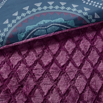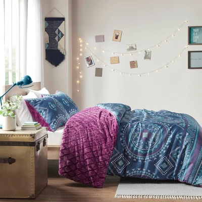 Double up on style and comfort with the Blair Reversible Comforter Mini Set. The reversible comforter features a printed geometric design that reverses to a diamond pressed faux fur, for a vibrant globally inspired look and incredibly soft deep. Two matching shams (1 for Twin Sizes) with hidden zippers on the sides mirror the reversible design of the comforter to complete the contemporary bedding set. Hypoallergenic polyester filling in the comforter provides exceptional warmth and comfort. Machine washable for easy care, this reversible comforter mini set offers an incredible value and style for your bedroom. This comforter set is also OEKO-TEX certified, meaning it does not contain any harmful substances or chemicals to ensure quality comfort and wellness.