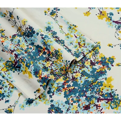 Update your bedroom with this sophisticated and stylish multi-colored floral printed deep pocket sheet set. Woven of 300 Thread Count 100% Cotton Sateen, this sheet set includes an oversized flat sheet and an extra deep pocket fitted sheet that fits mattresses up to 22″ deep.
