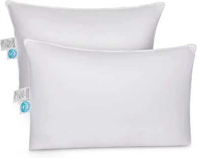 - Comfy and Hypoallergenic Choose pillows with the down and feathers carefully sealed up for your protection. Your 300 TC cotton shells and inner liners guard against leakage, odor, and poking.