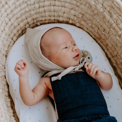 - Flexible-Fit Bassinet Sheet 2-Pack for Baby Boy or Baby Girl in Grey Dottie Bundled in our charmingly cute and compact packaging, this set makes for the perfect baby shower gift!