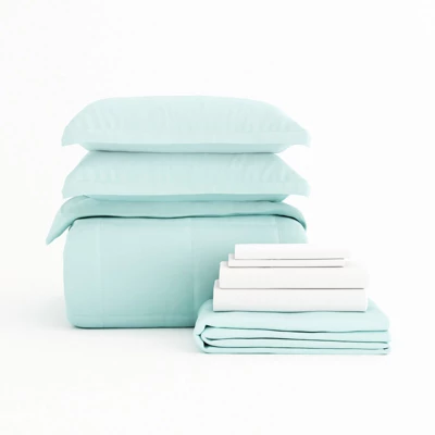 You can’t have a good night’s sleep without a comfy bed to sleep in. Now you don’t have to stress about finding the right bedding set because we’ve put together 8 pieces for you. Includes 4PC white bed sheets set, set of 2 shams, a comforter, and bedskirt that are easy to care for and come in 8 different colors, and each piece is double brushed for an ultra soft and cozy texture. Our premium yarns are twice as durable as cotton, wrinkle resistant and a perfect choice for those with allergies or sensitive skin. Twin and Twin XL size comes as a set of 6 Pieces (3PC White Bed sheets set, a sham, a comforter and a bedskirt).
