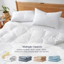 Balance casual luxury and contemporary style with this white goose feather fiber down comforter. Featuring with premium white goose feather fiber and white goose down fill for light warmth and year-round warm. Sewn-through box construction to keep the fill from shifting.Featuring with premium 5% white goose down and 95% white goose feather fiber fill and covered with 360 thread count downproof cover to keep you warm throughout the whole night,and it’s ultra soft to the touch.