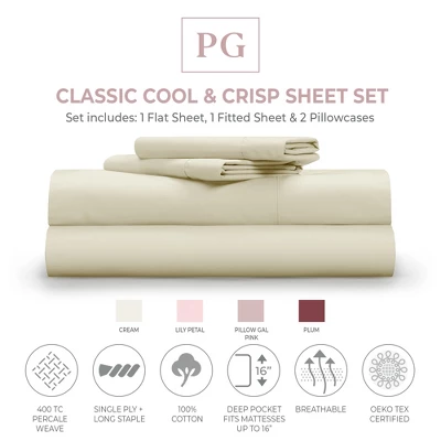 At PG the assortment is small and curated on purpose. You can be confident that everything that is marked with the PG brand is best-in-class. Our PG 400 Thread Count 100% Cotton 4-piece Sheet Set is specially woven for that cool & crisp feel every night. Our sheets are a bedroom must-have!