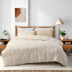 For a bedding pick that feels lofty and luxurious night after night, choose the Premium Down Comforter from Casaluna™. This hypoallergenic comforter is generously filled with 600-fill power duck down that has been thoroughly washed to remove any impurities. The cotton sateen outer has a soft finish and an ultra-inviting feel, and its box-quilted design helps minimize shifting for even weight and distribution throughout. Thoughtfully designed, this comforter will have you resting easy from the comfort of your very own in-home oasis.