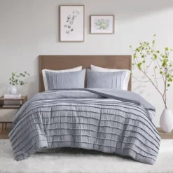 Beautyrest Maddox Striated Cationic Dyed Oversized Duvet Cover Set With Pleats