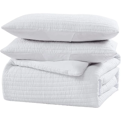 The Nesting Company Palm 3 Piece Quilt Set is simple and sophisticated. With its Channel quilting pattern it can create a cozy farmhouse look. Solid colors can also provide a relaxing space – great for winding down after a long day. Made from super soft Microfiber, perfect for year round use. This set is machine washable for easy care.