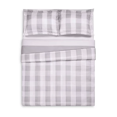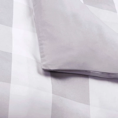 This large buffalo check print features a white background and gray intersecting pattern on the face of the duvet. The reverse is a solid color gray. The duvet and shams feature a brushed 100% microfiber polyester Truly Soft fabric with special finishes to make this the ultimate in softness. Each duvet set comes with a duvet cover (insert is not included and needs to be purchased separately. Shams require inserts that must be purchased separately. This item can be machine washed but please be sure to use properly sized machinery to care for the item. Duvet face and back are made from 100% microfiber polyester fabric. These items are all machine washable; however, care should be taken to use appropriate sized equipment.